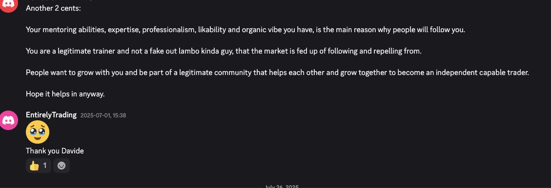 Turn every mistake into a stepping stone toward profitability. In 6-8 weeks, you’ll build consistent trading skills by trading live under expert supervision, getting real-time corrections and structured feedback - so you stop guessing and start growing